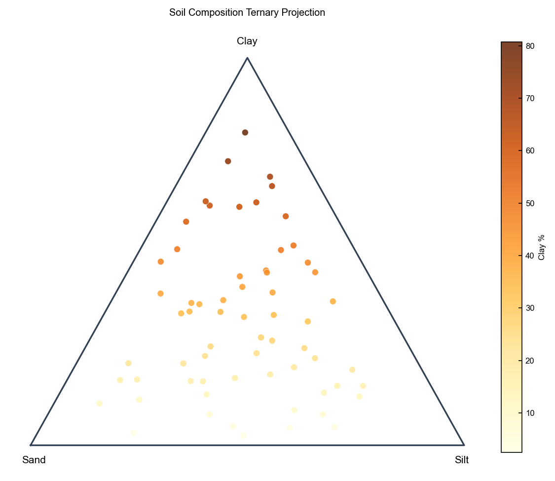 Stereonets, ternary plots, and soil classification diagrams.