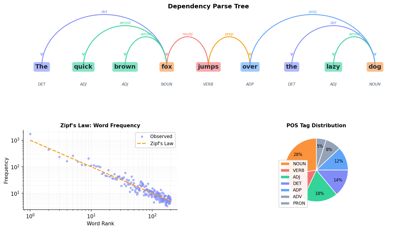 Syntax trees, dependency parsing, and text structure visualization.