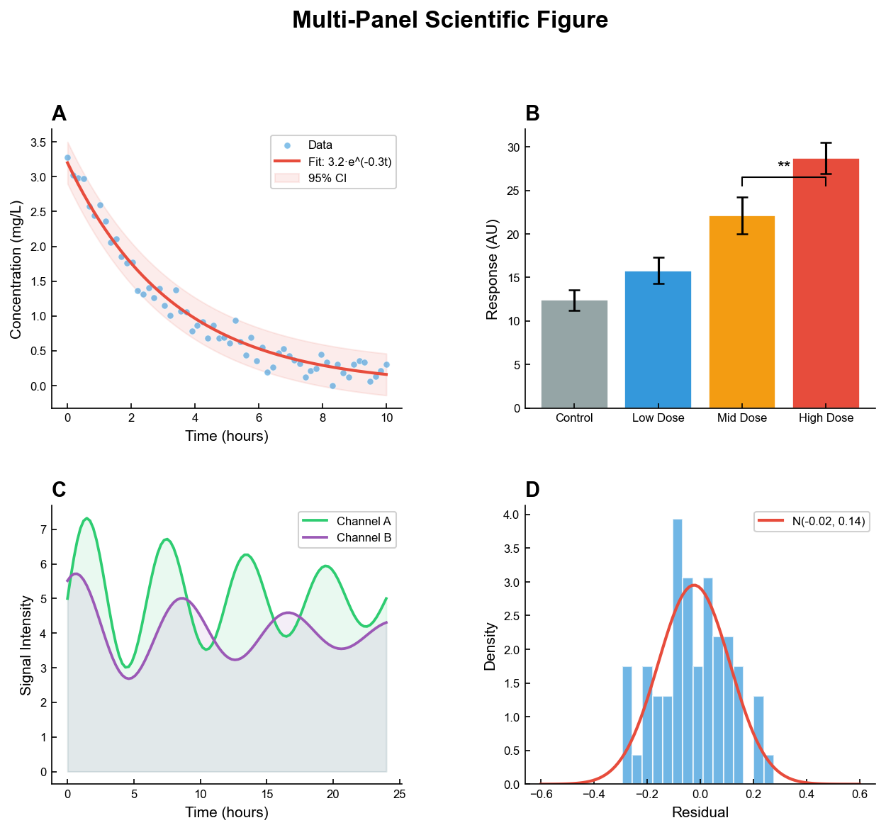 Publication-ready figures, statistical analysis, and reproducible workflows for general research.