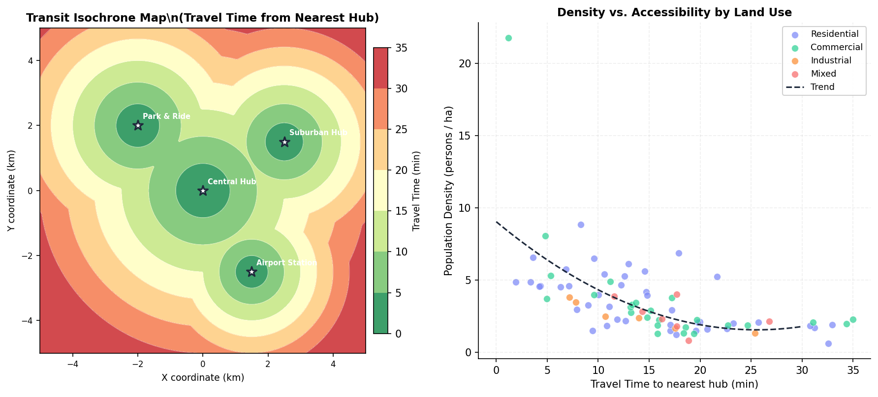 Geospatial analysis, isochrone maps, and voronoi tessellations.